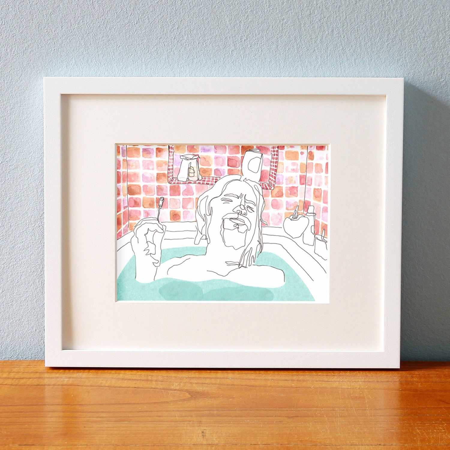 Bianca Kennedy Serie "Portraits of Taking a Bath in Movies": Big Lebowski, 2022 Material Schwarzer Fineliner, Wasserfarbe und Seidenpapier auf Papier Auflage 1 Maße Motivmaß: 15 x 20 cm, Rahmenmaß: 24 x 30 cm UNIKAT rückseitig signiert, datiert und betitelt Details zum Rahmen weißer Holzrahmen, inkl. Passepartout, Außenmaß 24 x 30 cm Die neue Art, Kunst zu kaufen Handverlesene, exklusive Editionen Limitierte, signierte Auflagen Top-KünstlerInnen und Rising Stars Schnell registrieren, um Preis und Verfügbarkeit zu sehen. Jetzt kostenlos Mitglied werden Bereits Mitglied? Über das Werk Ist die Badewanne der letzte Ort des Rückzugs und der Kontemplation? Die transformierende Kraft des Wassers in der Wanne, die als Dreh- und Angelpunkt besonders in Filmen genutzt wird, fängt Bianca Kennedy mit ihrer Edition „Portraits of Taking a Bath in Movies“ ein. Denn im Film spielt die Badewanne und das, was in ihr passiert, eine besondere Rolle: als Ort von lebensverändernden Geheimnissen, von Mord und Totschlag oder auch als Beichtstuhl, in dem Verborgenes preisgegeben wird. Jede der Zeichnungen leuchtet in feinen Linien die Besonderheiten dieses spezifischen Ortes aus und lässt durch den dynamischen Strich den Raum offen für das, was der Film auch leistet: nämlich für das Davor und Danach der Szenerie. Dargestellt ist nur ein Ausschnitt aus einem weitaus größeren Narrativ, der zugleich voller sozialer Kodierungen ist. Die Brushmarker-Farben verlaufen förmlich auf dem Papier, so als wären auch sie kurz in Wasser getaucht worden. Die im Alltag geforderte Eindeutigkeit weicht hier auf, und Räume, in denen alles möglich ist, werden eröffnet. Manche Filmszene erkennt man, wie die der „Träumer“, die zu dritt so verloren und doch selig in der Badewanne sitzen. Bei anderen Zeichnungen benötigt man mehr Zeit, um die Vorlage zu identifizieren. Dabei ist schon das Nachdenken darüber eine Tätigkeit, die zum einen unser popkulturelles Gedächtnis herausfordert und uns zum anderen abtauchen lässt in neue Denkräume. Über die Künstlerin Bianca Kennedy, 1989 in Leipzig geboren, hat an der Akademie der Bildenden Künste in München studiert. In ihren Videos und Stop-Motion-Filmen setzt sie sich mit den (Un-)Tiefen der menschlichen Psyche und den Grenzen dessen, was als erträglich empfunden wird, auseinander. In raumgreifenden Installationen hangelt sie sich am menschlichen Körper entlang, um seine Zukunft in einer technologisierten Welt auszuloten. Zusammen mit The Swan Collective erarbeitet sie Filme und VR-Installationen. Sie ist eine der wenigen Künstler*innen, die VR-Technologien regelmäßig nutzen und damit ganz neue Zugänge zur Kunst schaffen. Gemeinsam mit Janine Mackenroth hat Kennedy den Sammelband „I Love Women in Art“ herausgegeben, der im letzten Jahr zum 100-jährigen Jubiläum der Zulassung von Frauen an Kunsthochschulen erschienen ist. Ausstellungen (Auswahl) Bianca Kennedys Arbeiten wurden in Museen und Galerien sowie auf Festivals gezeigt, dazu zählen u.a. die Kunsthalle Baden-Baden, das Museum der bildenden Künste in Leipzig, das CCBB Rio de Janeiro, das LOOP Festival Barcelona und das Sundance Film Festival. 2019 wurde ihr der TOY Berlin Masters Award verliehen. Bis Ende Januar 2021 war sie in der Soloshow "We are all in this together" zu sehen bei Krinzinger Projekte. Lesenswerte Artikel / Links „4see“-Interview mit Bianca Kennedy und Felix Kraus „BerlinArtLink“-Interview mit Bianca Kennedy und The Swan Collective (2020) „Bianca Kennedy über Virtual Reality bei „arte“ Ausstellung „We Are All in This Together“, Alte Münze, Berlin (2018)