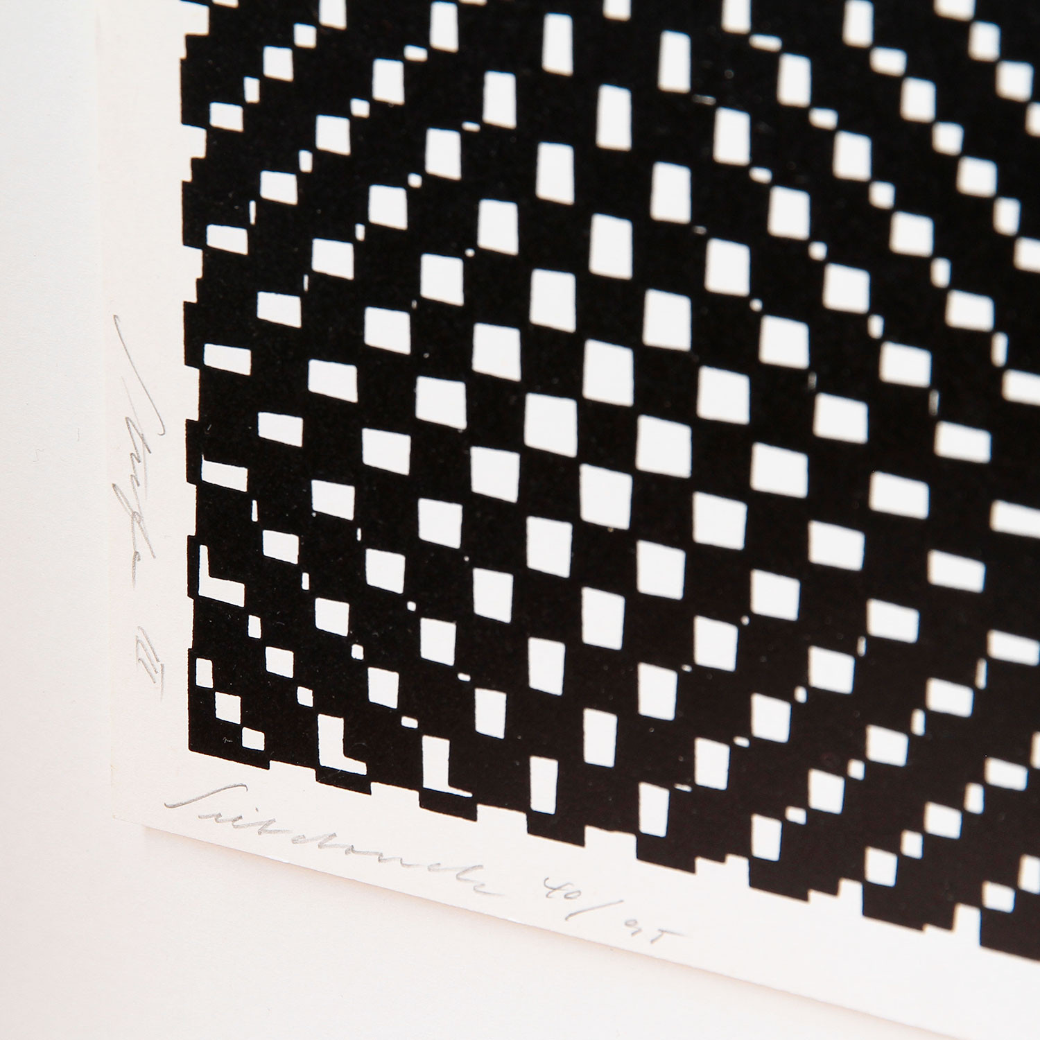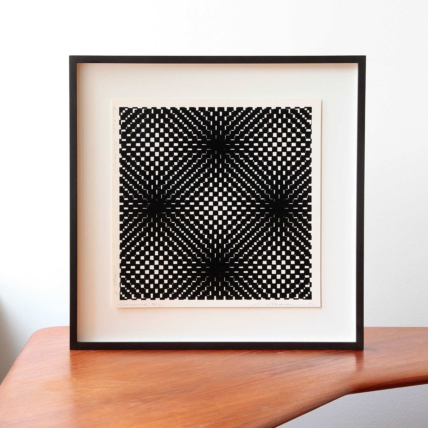 Jürgen Rohrberg Kinetische Lichtkraft, 1962/1977 Material Siebdruck auf Karton Auflage 230 Maße 28 x 28 cm Auflage 230 Auf der Vorderseite mit Bleistift signiert, nummeriert und datiert Details zum Rahmen Handgefertigter Nussbaum-Holzrahmen, mit 8mm Distanzleiste auf braunem Farbpapier, Außenmaße ca. 39,2 x 39,2 cm, inkl. Museumsglas und rückseitiger Aufhängung Die neue Art, Kunst zu kaufen Handverlesene, exklusive Editionen Limitierte, signierte Auflagen Top-KünstlerInnen und Rising Stars Schnell registrieren, um Preis und Verfügbarkeit zu sehen. Jetzt kostenlos Mitglied werden Bereits Mitglied? Über die Künstlerin und die Edition Lesenswerte Artikel / Links Verena Loewensberg in der Sammlung im Museum Haus Konstruktiv, Zürich Verena Loewensberg bei The Mayor Gallery, London